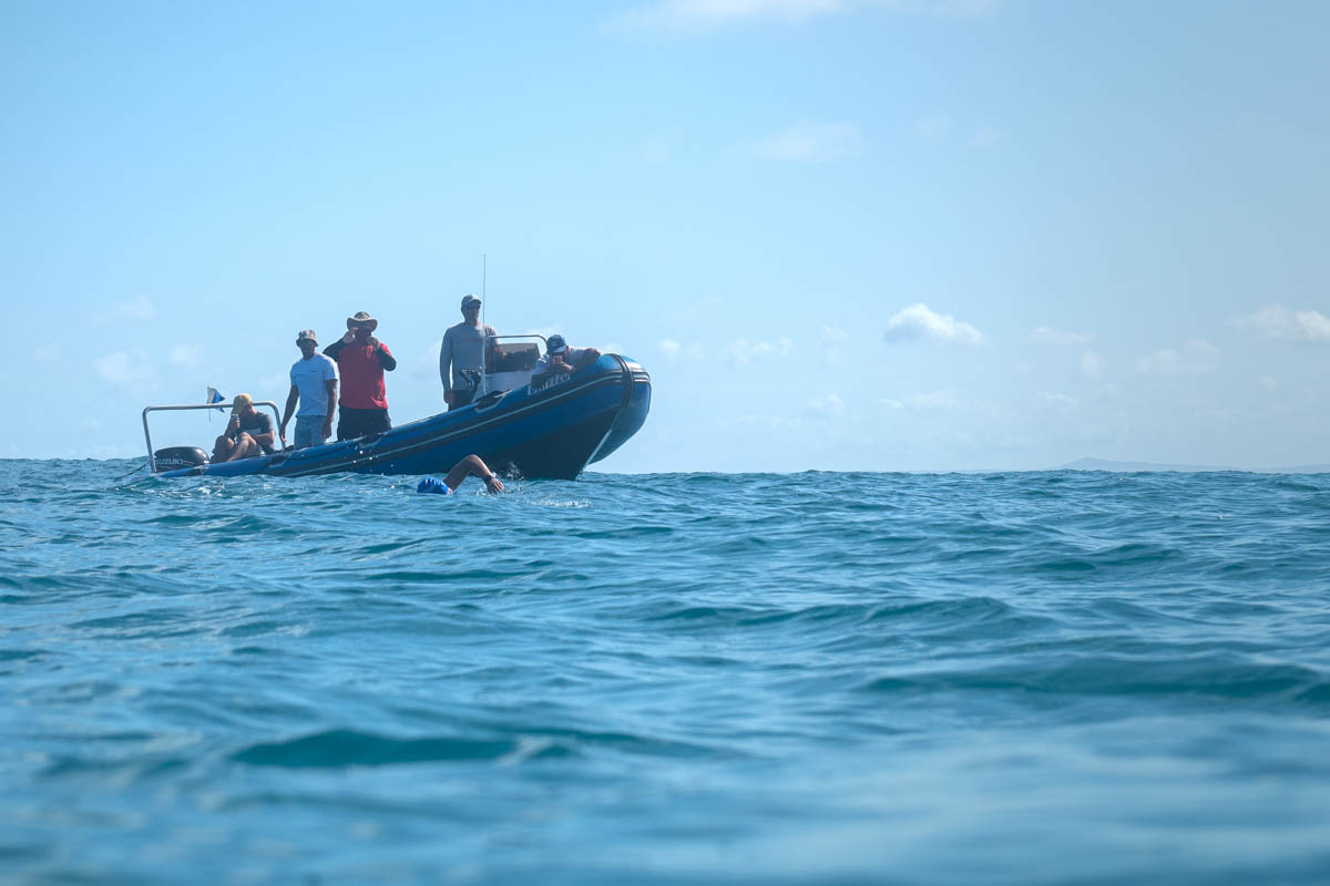 Johnstone battled heavy swell, strong currents and repeated bluebottle stings during the attempt. At one stage, his support crew recorded only nine metres of progress over an entire hour while he struggled against opposing currents.