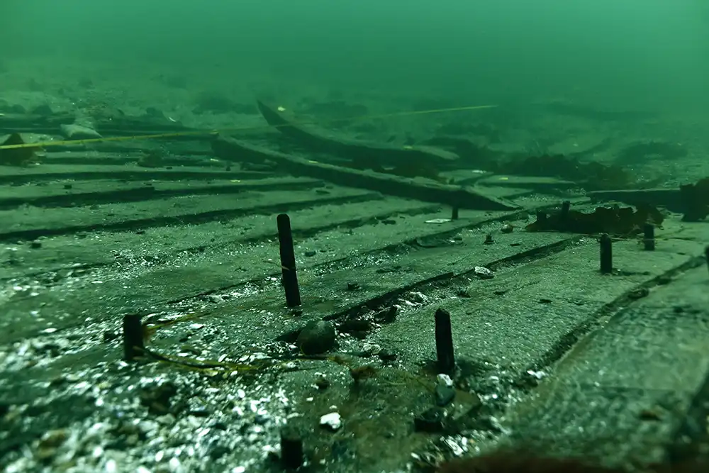 The wreck was excavated at a depth of around 13 metres, where it had been protected by sand. The vessel’s starboard side from its keel to gunwale (the top of the hull) remains relatively intact, which has enabled the archaeologists to study construction details that are rarely preserved in other discoveries.